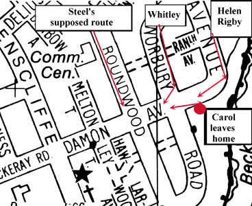 If Brenda Whitley and Helen Rigby both saw Carol Wilkinson not far from her home, how did they miss seeing Tony Steel - if he was there at the same time?